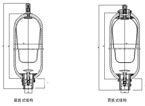 4.卸下蓄能器前必須卸去壓力油,使用充氣工具放掉皮囊中的氮氣,然后才能拆下各零部件。